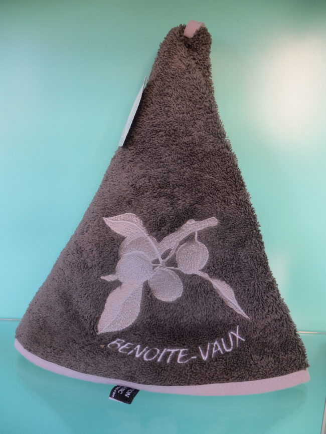 Beau torchon peut être utilisé comme essuie mains à la cuisine comme à la salle de bains. Souvenir de Benoite-Vaux.